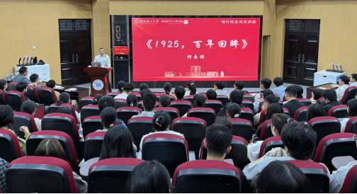 讲座中,何永祥校友的讲述实现了历史与现实的深刻对话。他以“1925年:近代中国的巍峨分水岭”为引,结合书中生动的历史素材,将百年前神州大地的风云变幻娓娓道来,让师生在救国图存的呐喊与民族坚韧的精神中体悟历史的厚重。同时,他也分享了自己深耕食品行业的职业历程,讲述从校园走向职场的成长点滴,勉励新生既要专注专业、锤炼硬实力,也要拓宽视野、涵养大格局。生动的讲述引人入胜,现场不时响起共鸣的掌声。