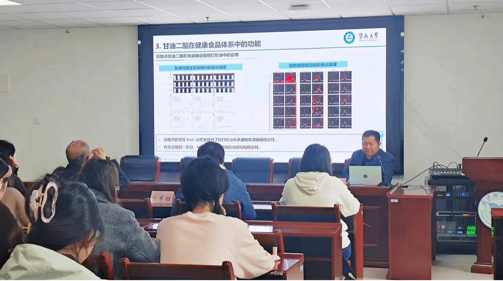 11月9日上午,应我院邀请,暨南大学国际学院院长、中国-马来西亚油脂加工与安全“一带一路”联合实验室中方主任汪勇教授来访交流,在金银湖校区笃行楼B602为我校师生作了题为“甘油二酯酶法催化制备及其在健康食品开发中的应用”的学术报告。我校食品科学与工程学院部分教师及研究生参与了此次交流活动。