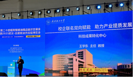 本届博览会以“智链荆楚·粮通天下”为主题,聚焦粮油供应链创新与产业升级,汇聚了全国粮油领域的专家学者与企业代表。会上,我校科技成果转化中心主任、食品学院教授王学东以“校企联名双向赋能 助力产业提质发展”为题作主题分享。他结合学校科技成果转化中心的建设实践,系统阐述了粮油食品领域的技术研发、成果转化路径,以及校企协同创新的具体模式,提出了多项契合产业实际需求的解决方案,分享内容获得了现场嘉宾与行业代表的高度认可。